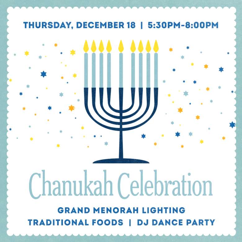The Chanukah Celebration includes a giant Menorah lighting, traditional food – enjoy delicious Chanukah treats to savor the flavors of the season, music & singing, and fun swag – take home fun holiday goodies and special Chanukah-themed swag.
