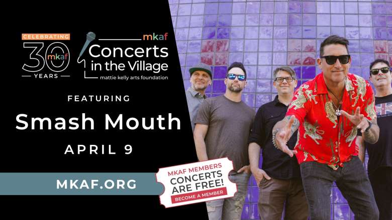 Smash Mouth live at MKAF’s Concerts in the Village Thursday, April 9th. Gates open at 6 p.m. with concerts beginning at 7 p.m. for this come-as-you-are family-friendly outdoor concert series. Bring a lawn chair, picnic, wine, or purchase food and beverages on-site prepared by featured restaurants and food trucks.