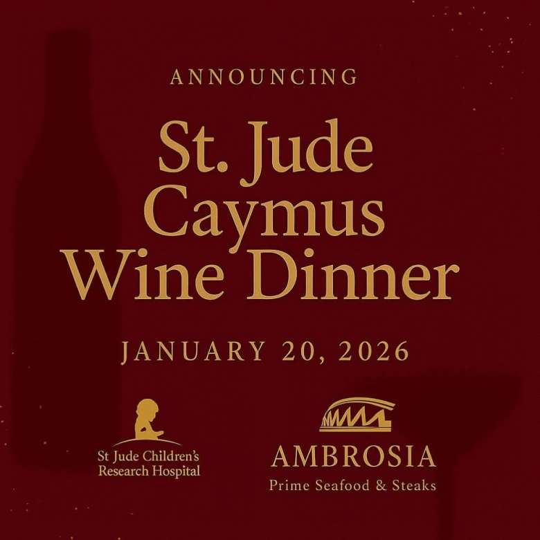 Join Ambrosia Prime Seafood & Steaks on Tuesday, January 20, 2026 for an extraordinary evening. Beginning at 6PM, experience a curated multi-course dinner paired with iconic Caymus wines, all in support of St. Jude Children’s Research Hospital.